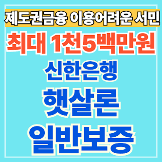요즘 은행 대출이 점점 까다로워지면서 제도권 금융 이용에 어려움을 겪는 서민들이 가장 많이 찾는 상품이 있는데요. 바로 신한 햇살론 일반보증입니다.
