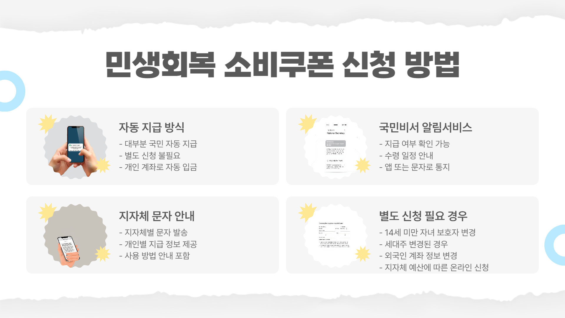 대부분 국민은 별도 신청 없이 자동 지급되며, 국민비서 알림서비스 또는 지자체 문자로 지급 여부를 안내받을 수 있습니다.