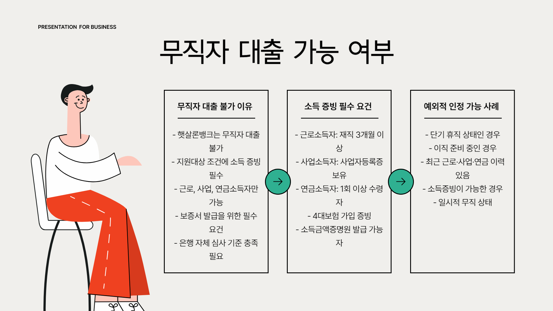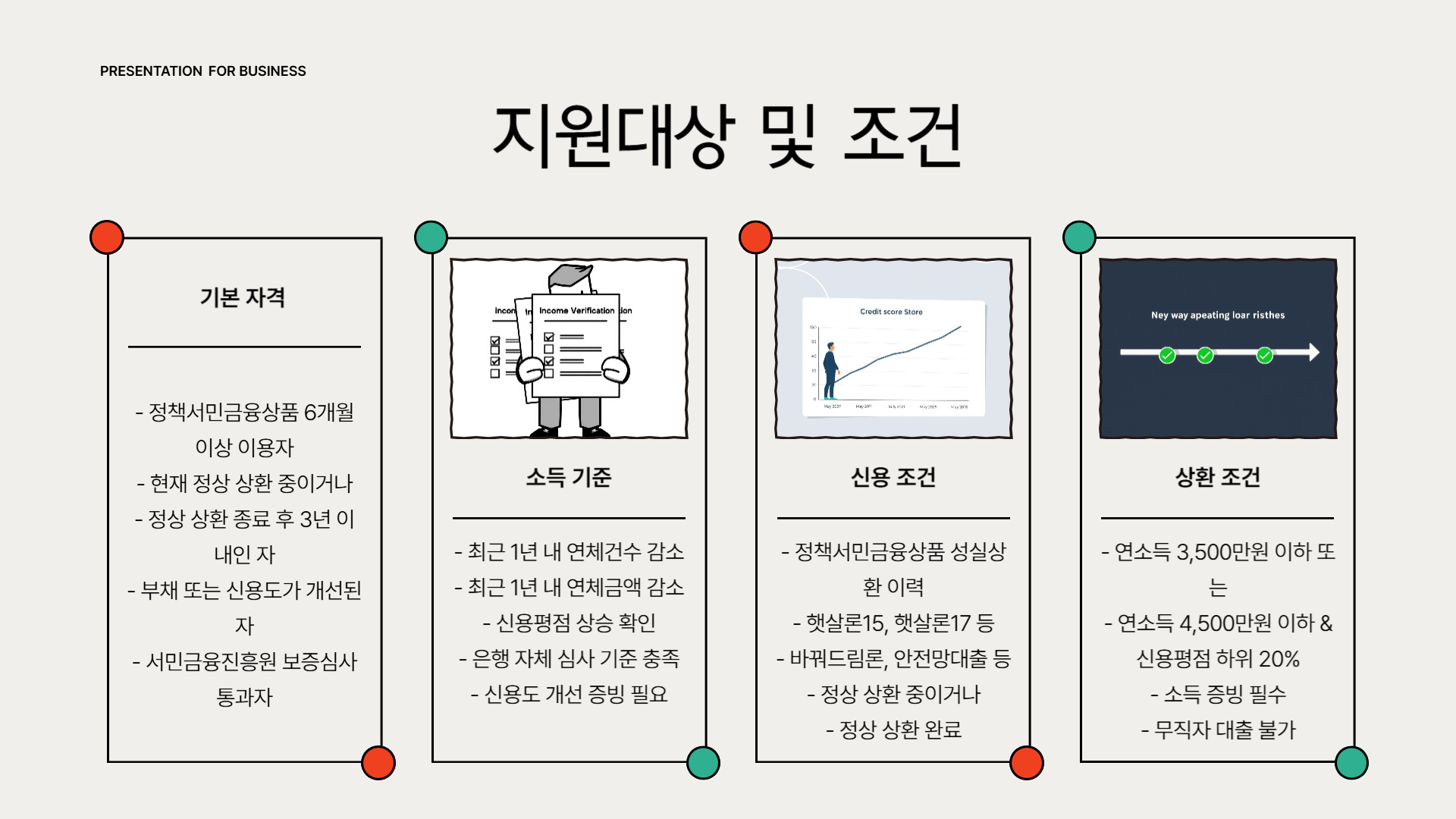 - 재직·사업·연금 등 증빙서류 (최근 3개월 이상 재직, 사업영위 또는 연금수령 확인)